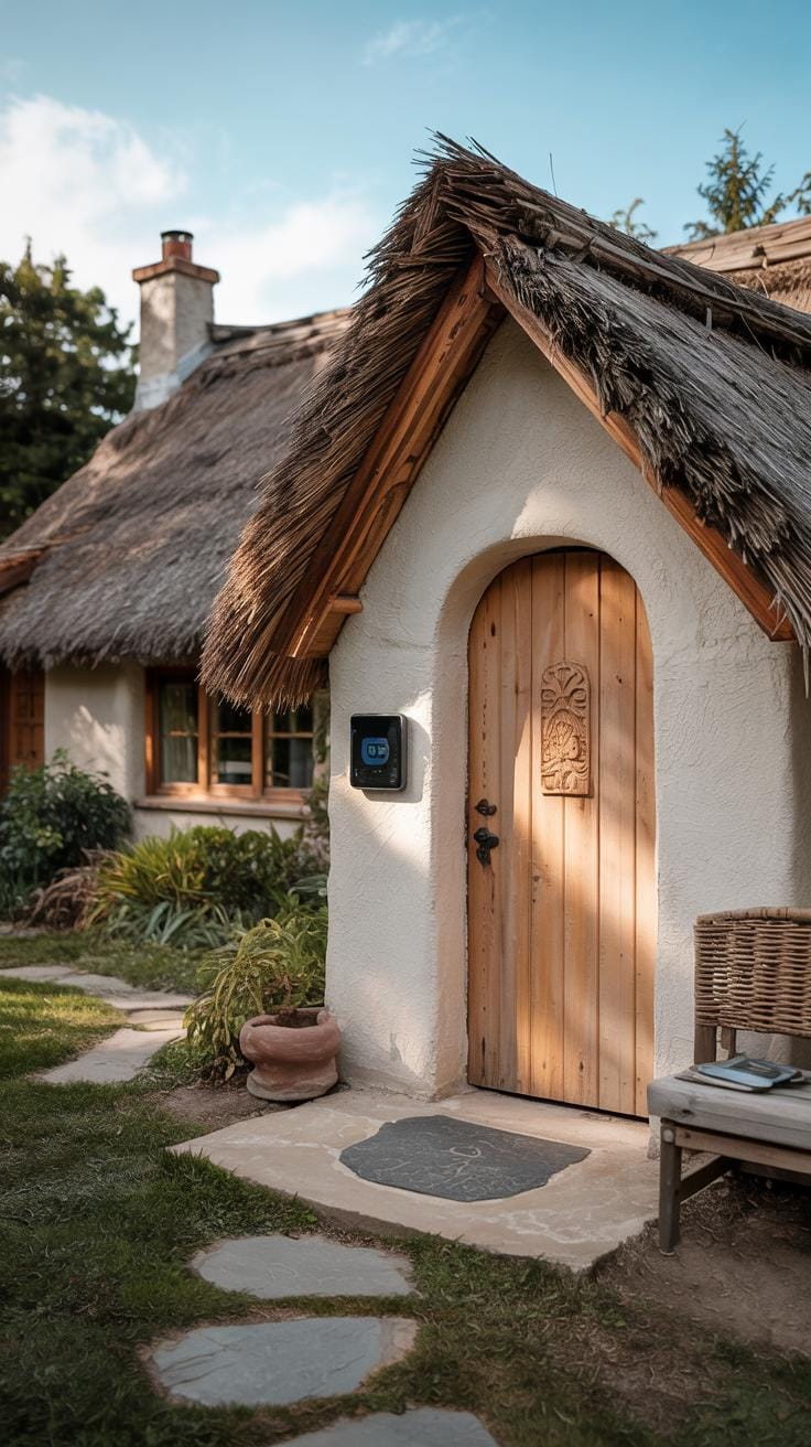 Adding solar panels atop your roof or near your home can provide energy without disturbing the cottage’s classic look. Select panels that have a low profile or match roof colors for a subtle presence. Good insulation, especially in tiny homes, keeps temperatures stable and cuts energy costs. Natural materials like sheep’s wool or recycled denim make effective, earth-friendly insulators that align with the storybook aesthetic.