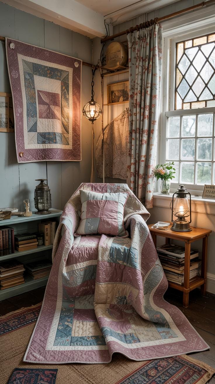 Handmade décor adds warmth to your cottage. Quilts stitched by hand or family can bring comfort and history to your space. Pottery you create or find at local craft fairs adds unique character.