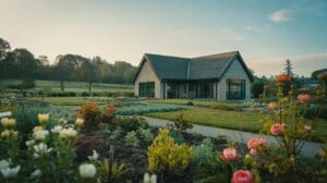 Gabled roofs play a key role. Their steep angles add height and visual interest, making the cottage look cozy yet inviting. Small-paned windows break up the glass area and echo classic cottage designs, adding character while letting in natural light.
