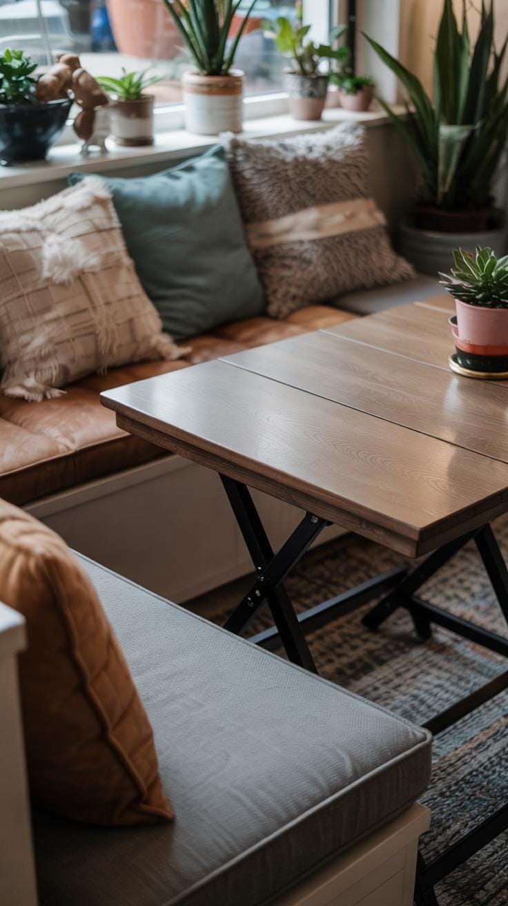 Furniture that works double duty is a must. A fold-out bed lets you turn the living room into a bedroom at night. Convertible tables switch from a small coffee table to a full dining surface. Storage benches offer places to sit and hide blankets, toys, or shoes inside.