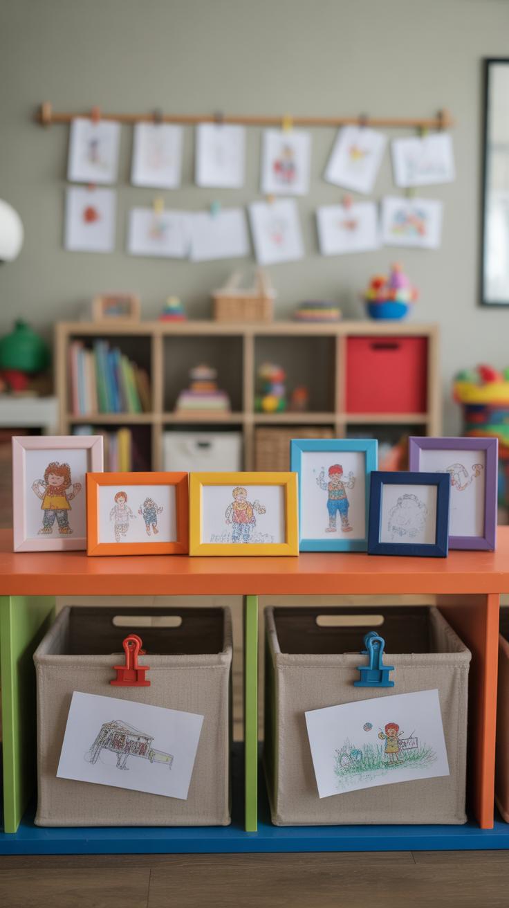Finding creative ways to show off toddler art in your storage spaces can actually be a fun challenge. Instead of hiding those colorful masterpieces away, why not turn the storage area into a mini gallery? Frames are a pretty straightforward choice. You can pick simple ones or even create your own with cardboard or scrap wood. It’s surprising how a little frame instantly makes the art feel special.