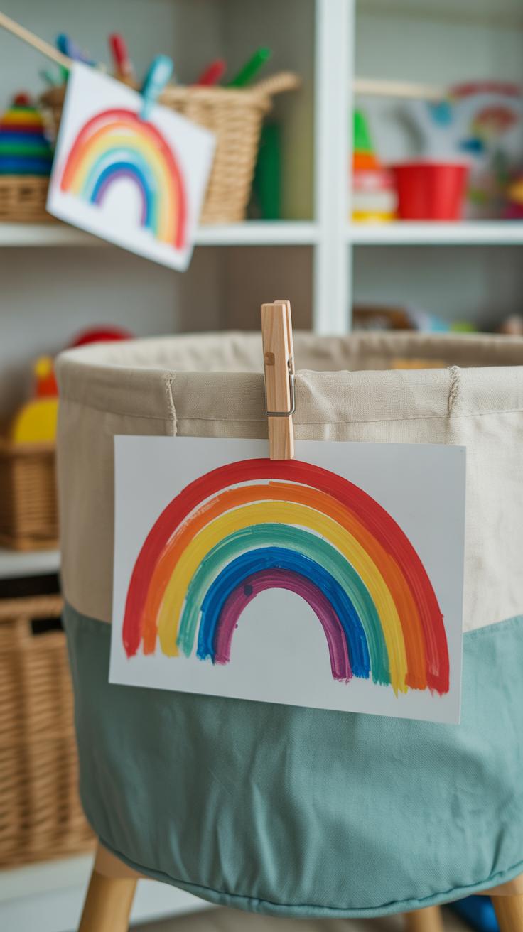Color choices play a subtle role in integrating toddler art into your storage zone. You can either pick colors that blend in with your storage area’s existing palette or use contrasting tones to make the art pop. For instance, if your shelves are mostly neutral—think beiges or grays—bold primary colors in your toddler’s art will draw the eye right away. But if you prefer a calmer vibe, softer pastels or muted shades from the artwork can quietly brighten the space without shouting for attention.