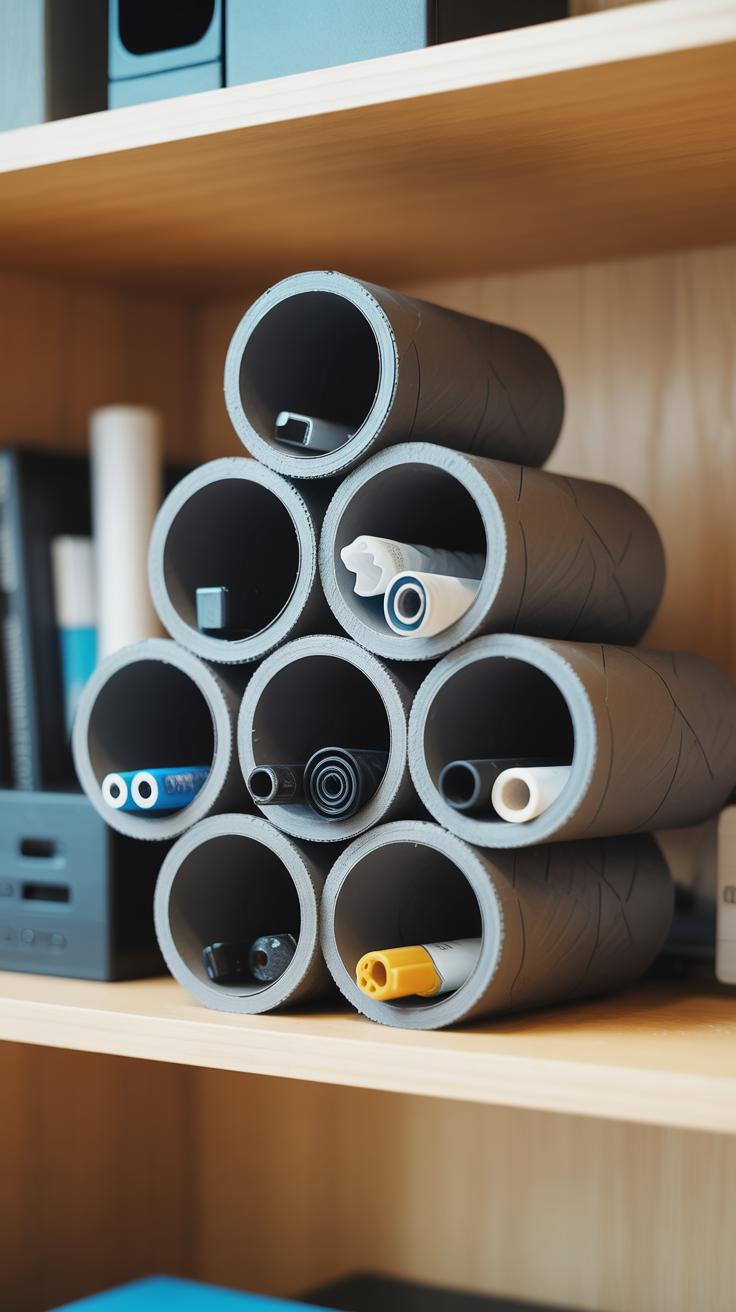 Besides bigger stationery, small items like paper clips, rubber bands, or push pins get lost easily on desks. Using individual rolls or smaller halves can create neat containers for these tiny essentials. Try labeling each roll with a sticky note or a marker so you know what’s inside without rummaging. You could even stack a few vertically inside a drawer for better visibility. I found this approach especially useful in my home office; it kept loose trinkets from turning into clutter without spending extra money on storage bins.