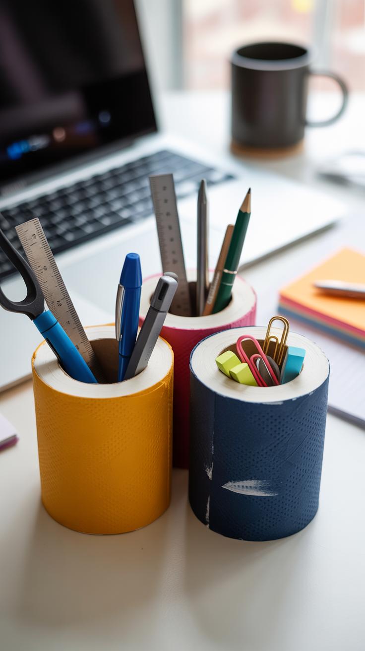 Start by collecting several toilet paper rolls. Then, cut them evenly if needed so they match in height. Arrange the rolls tightly in a cluster—three or four rolls often work well—and fasten them with glue or strong tape. You can decorate them with colored paper, washi tape, or even old magazine cutouts to give them a personal touch. Painting the rolls is another option, though it may take longer to dry. This simple assembly offers you multiple compartments for your writing tools, which means less time searching for that elusive pen later.