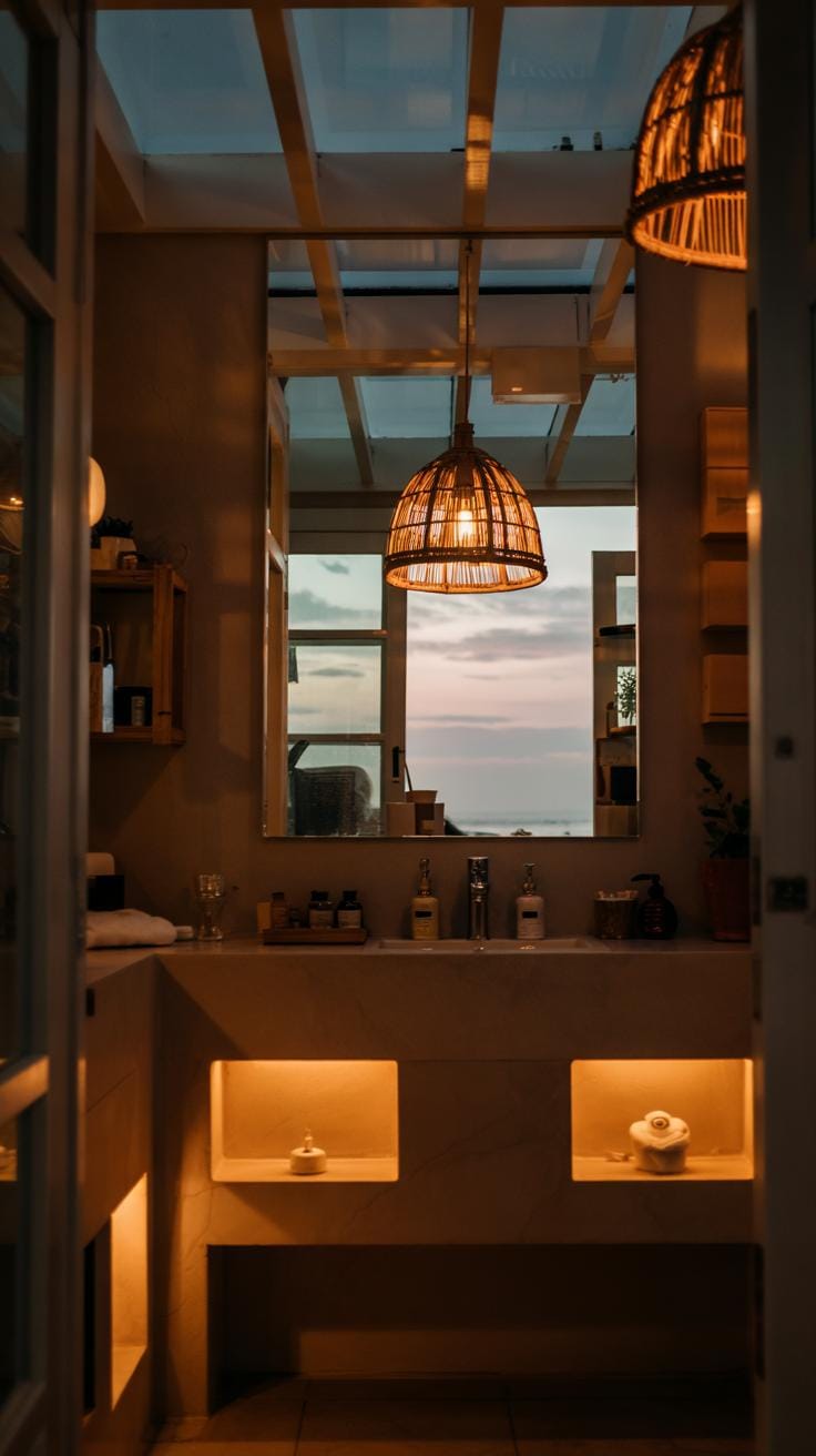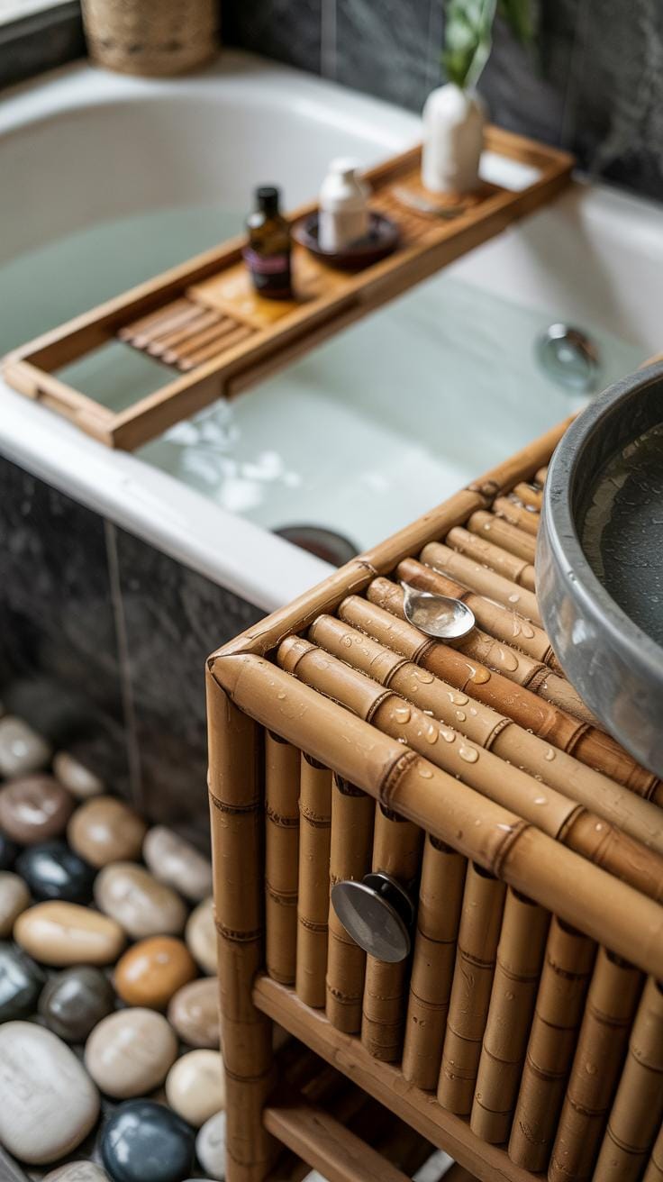 Light fixtures made from rattan introduce interesting shapes while maintaining softness in your lighting. This material blends well with wooden and stone elements, tying the room’s look together. Imagine how these smaller accessories can add layered texture without crowding your space. What bamboo or rattan pieces could you add to your bathroom right now?