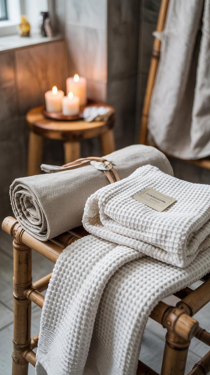 Try touching different towel fabrics before buying. Do they feel smooth or scratchy? Are they easy to wash? Matching your towels to your color scheme creates a cohesive look. Would your bathroom benefit from matching bath sheets or hand towels? Choosing towels that feel good encourages you to enjoy your spa-inspired space daily.