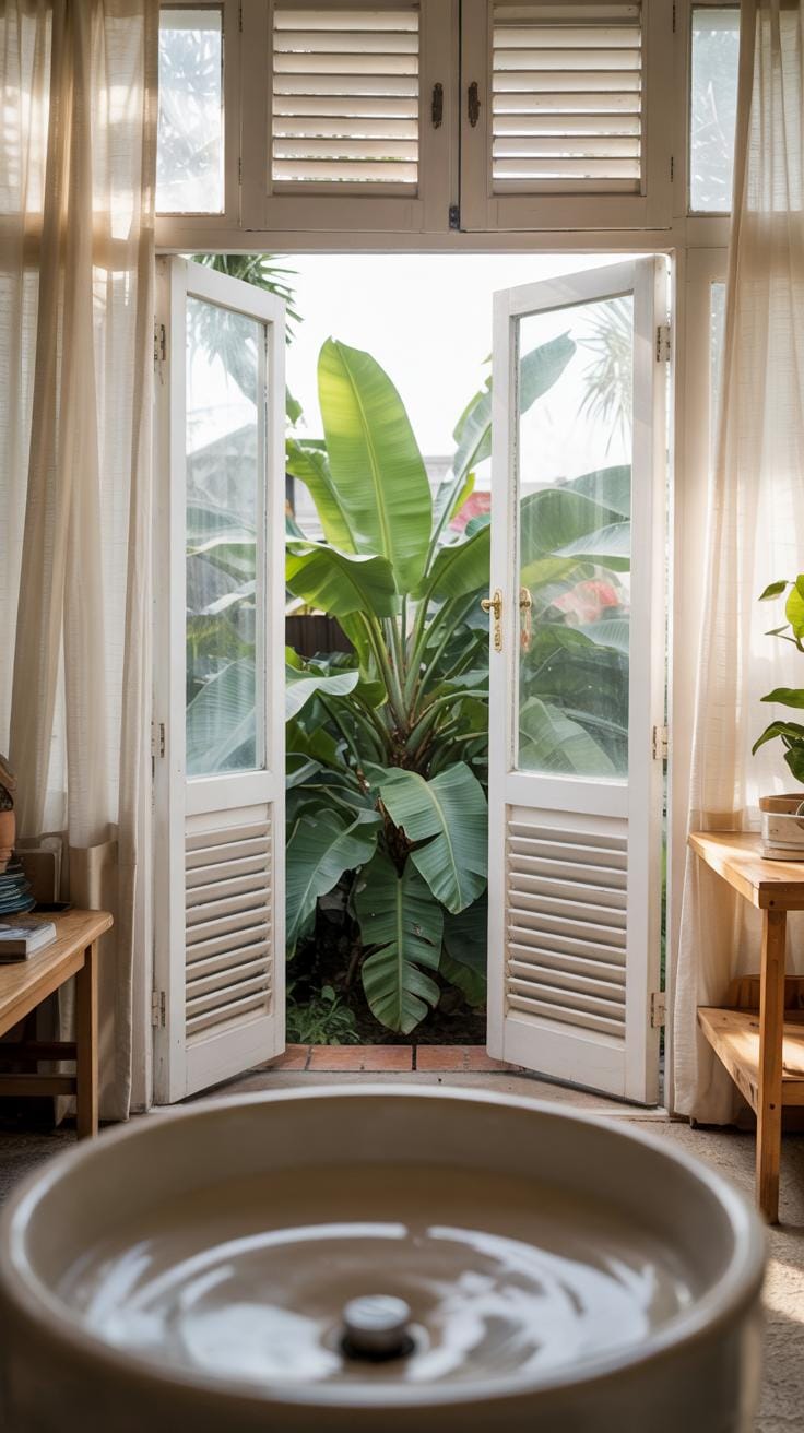 Natural stone tiles or countertops create a grounded feel underfoot and on surfaces. Look for irregular edges or subtle color variations to avoid a manufactured look. These features help connect your tropical oasis to the earth. Have you noticed how the natural pattern of stone invites calm and focus?