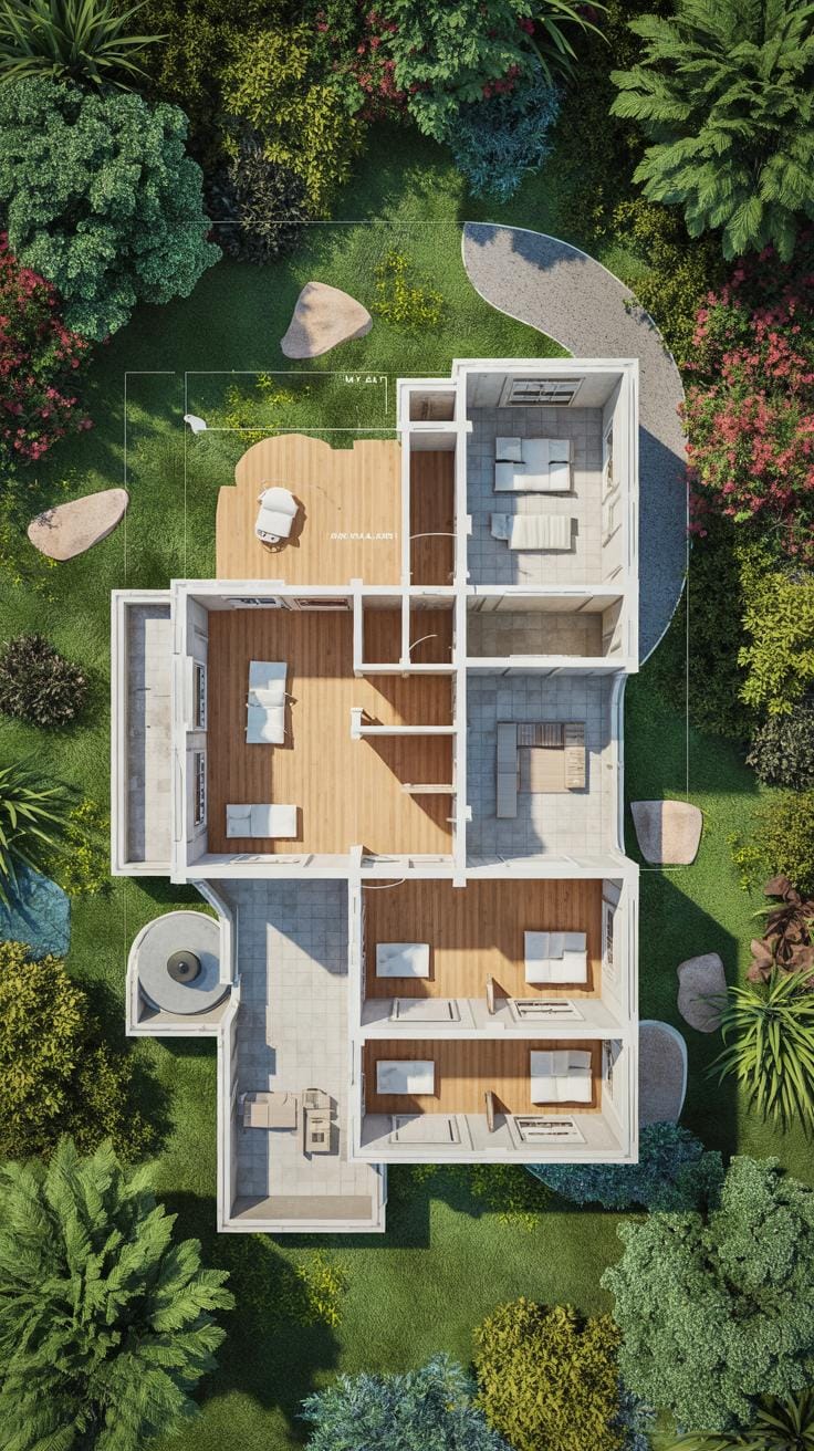 Choose materials that respond well to the environment. Timber and bamboo let the house blend with nature and perform well under tropical humidity. Concrete or stone can add thermal mass to stabilize indoor temperatures.