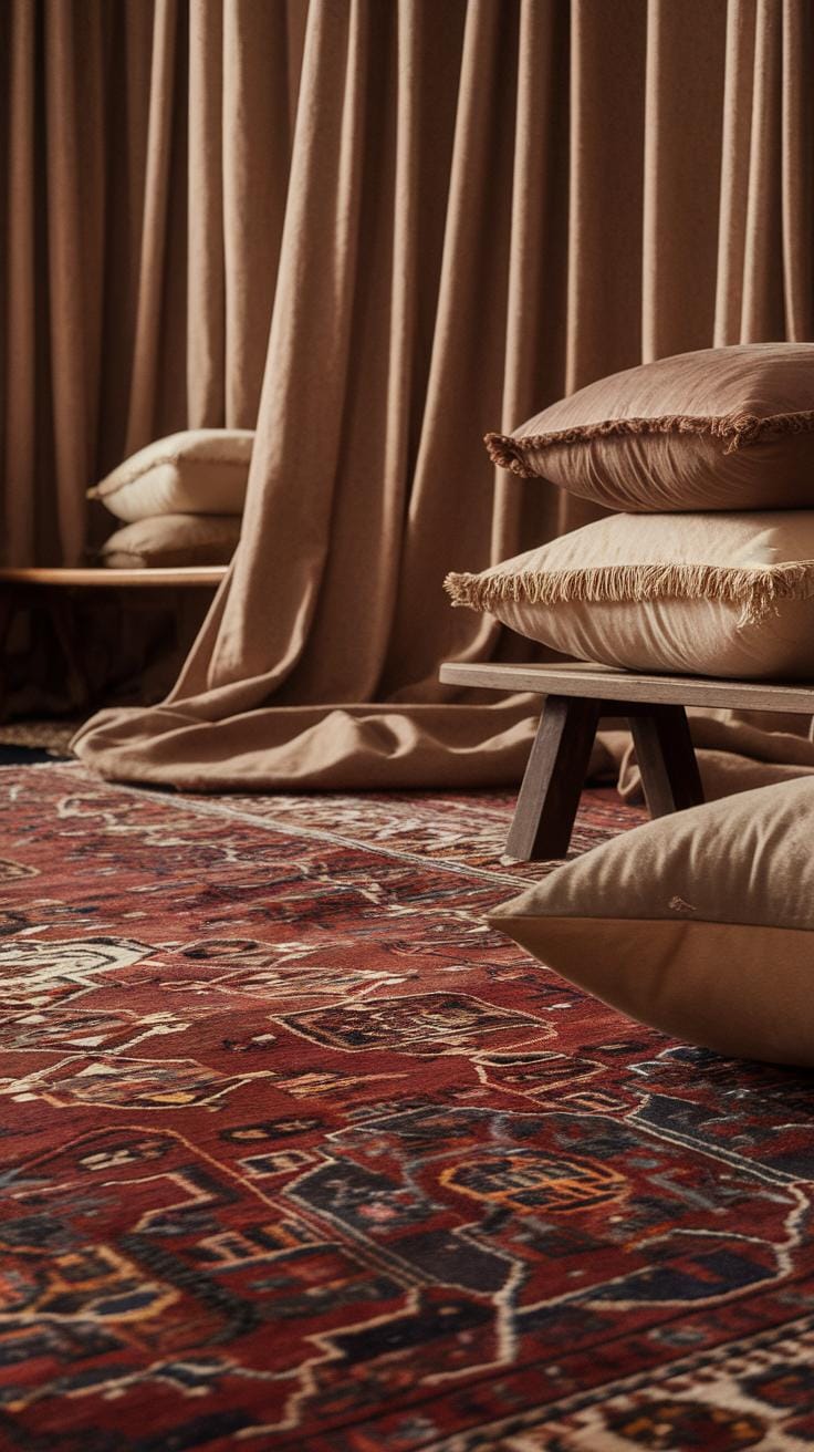 When working with your home, think about how textiles can create atmosphere. Would patterned rugs or lace curtains bring both comfort and style to your living spaces? How might layering fabrics change the feel of your rooms throughout the day?